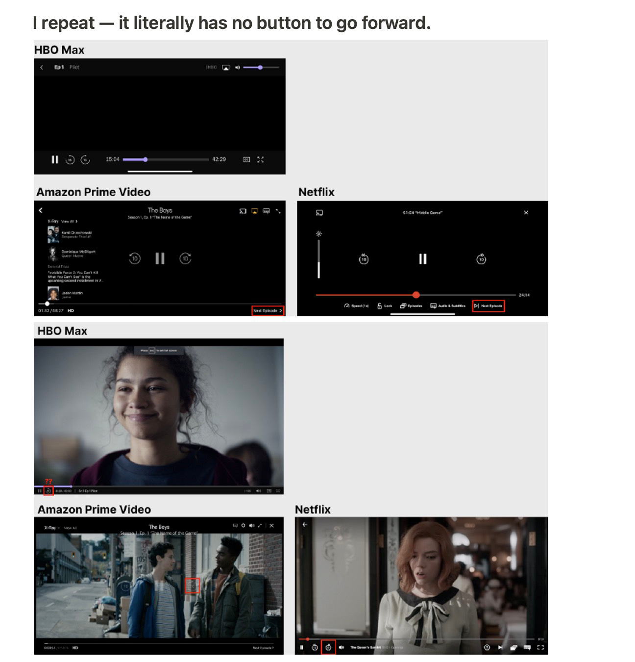 Some evidence founded on social media. A user decide to compare the ussage of the forward button y several plataforms.
